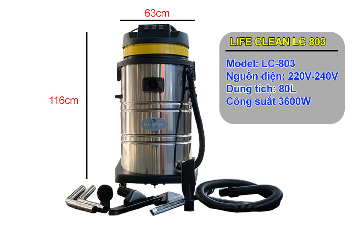 Máy hút bụi LIFE Clean LC 803 sử dụng 3 motor chuyên dùng để hút bụi, hút nước, các bụi bẩn khó làm sạch. Thiết kế rất phù hợp để sử dụng trong gia đình, văn phòng công ty, các cơ sở nhà máy, nhà xưởng vừa và lớn. Máy hút bụi hút nước LIFE Clean LC803 được sản xuất theo công nghệ của Mỹ.